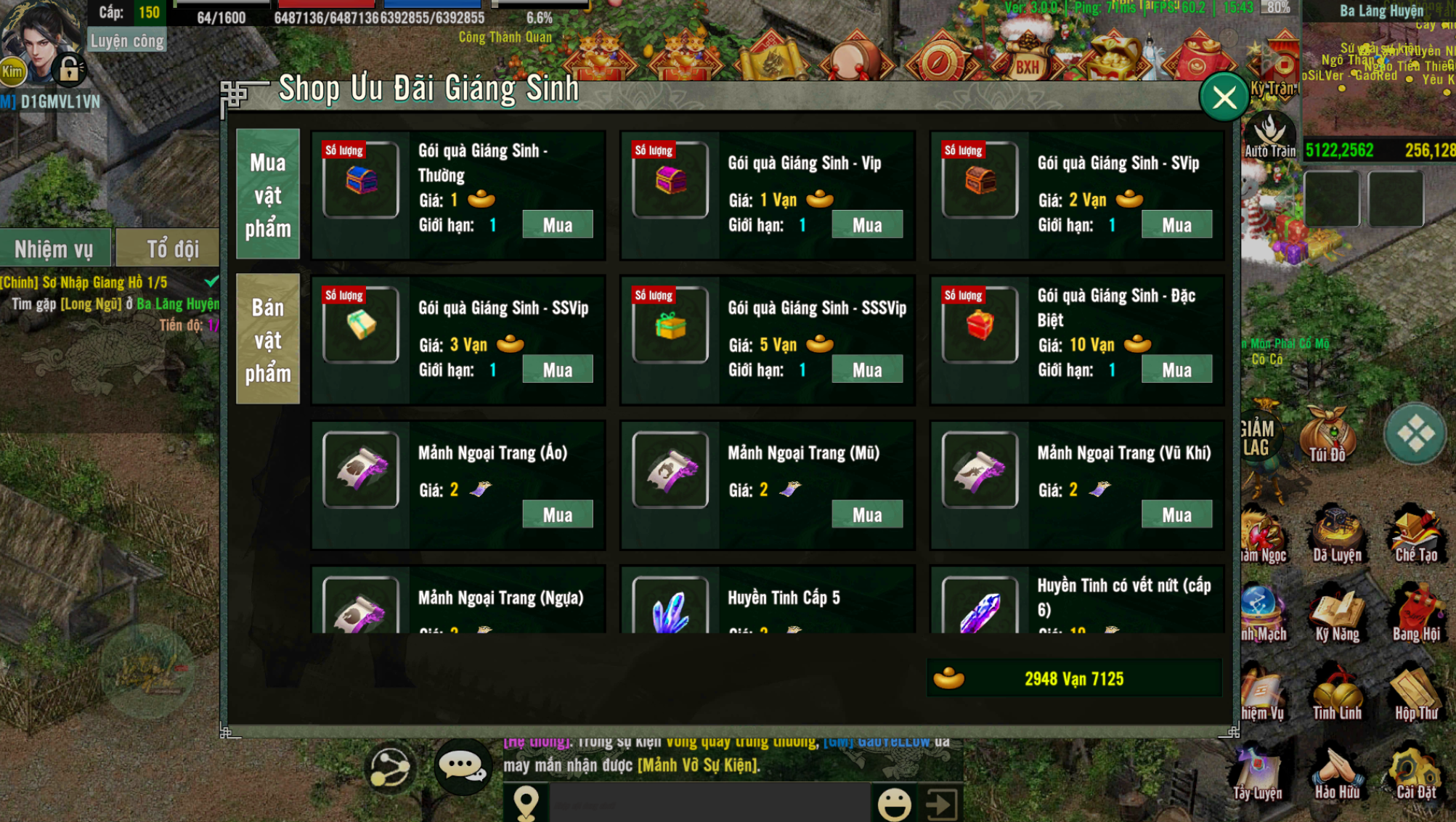 ❖ Hộp Quà Giáng Sinh : Sử dụng nhận Exp từ 15.000.000 – 18.000.000. Cứ mỗi 50 lần sử dụng nhận 1 HT 4 (khóa).Có tỉ lệ thấp nhận Huyết Ngọc.Tối đa sử dụng 3000 lần/nhân vật.Đặc biệt khi sử dụng "Hộp Quà Giáng Sinh có xác suất nhận được Ngôi Sao Giáng Sinh .