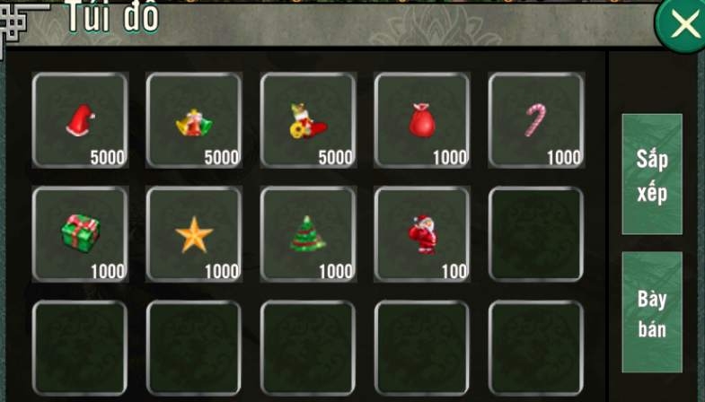 ❖ Kẹo Giáng Sinh : 1 Mũ Giáng Sinh + 1 Chuông Giáng Sinh + 5(8) vạn bạc tùy cụm sv.